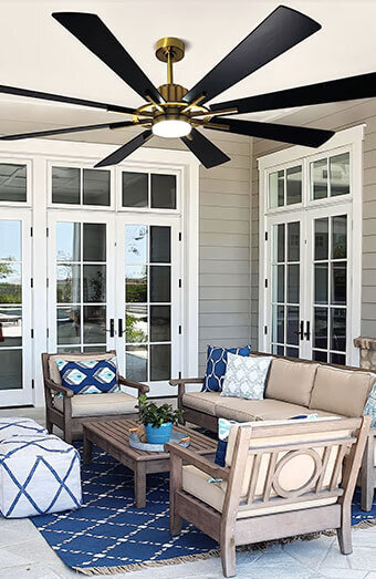 Installation of weather-rated ceiling fans for alfresco areas, patios, and balconies, designed to withstand coastal or high-moisture environments.